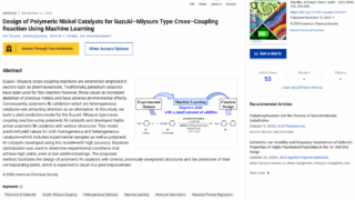 鈴木・宮浦型クロスカップリング反応における高分子Ni触媒を機械学習により設計しました![理化学研究所&金子研の共同研究論文] 理化学研究所と金子研における共同研究の成果の論文が ACS Applied Polymer Materials に掲載されましたので、ご紹介します。タイトルはDesign of Polymeric Nickel Catalysts for ... 2025.11.16 ケモインフォマティクスケモメトリックスデータ解析プロセス制御・プロセス管理・ソフトセンサー研究室研究発表論文