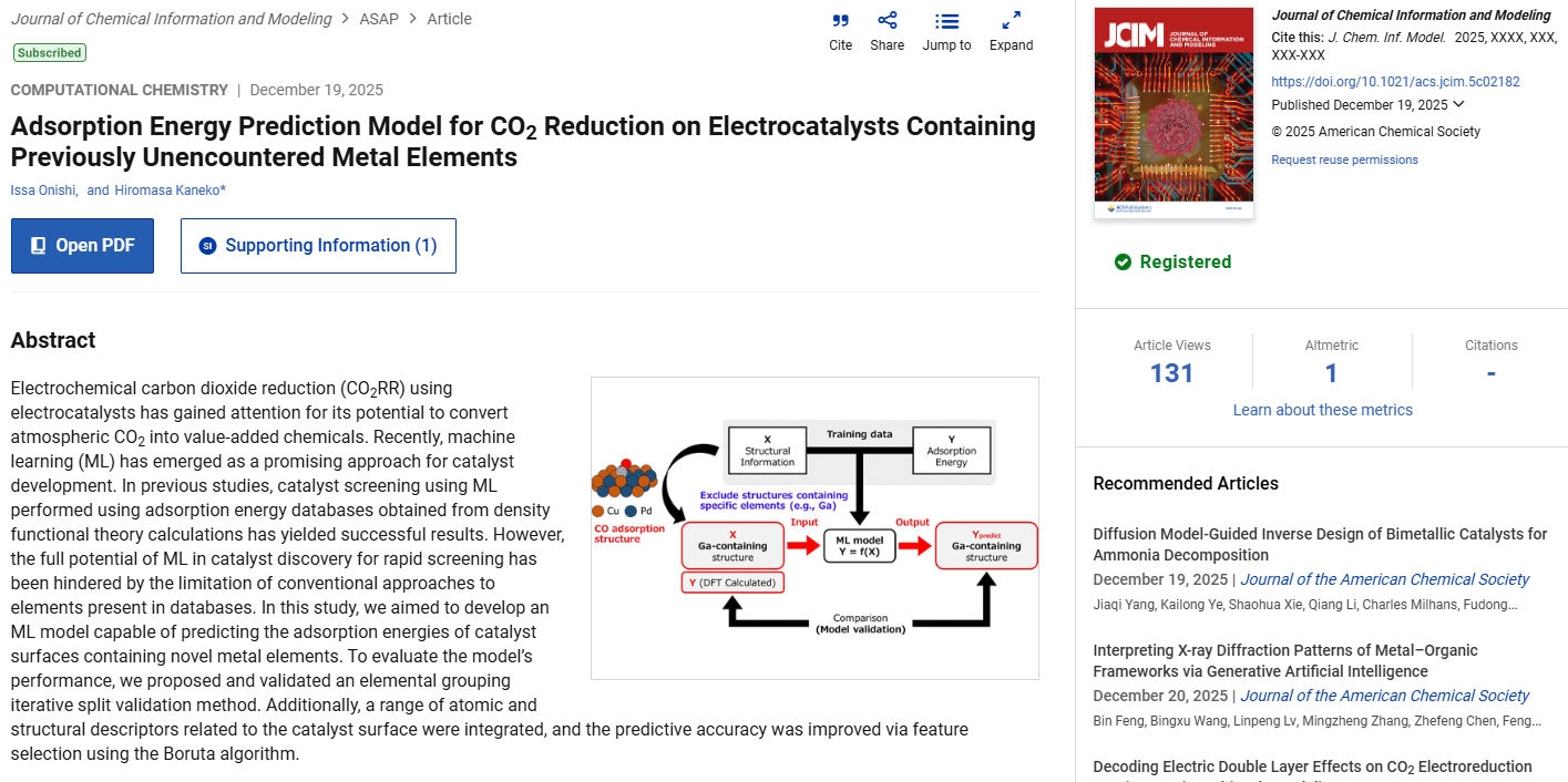 学習データにない未知の元素を含む触媒(外挿)でも機械学習モデルによる予測を可能にし、その予測精度を正しく評価する新手法EGISVを開発しました![金子研論文]