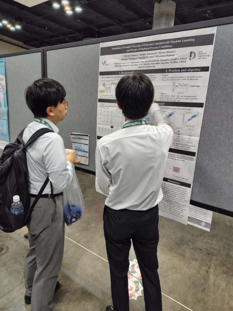 - Ryota Nomura, Yoshito Yamauchi, Hiroto Misawa, Kosuke Nishigaya, Satoshi Ooyama, Hiromasa Kaneko, Prediction of Product Viscosity of Polyvinyl Alcohol with Machine Learning and Design of Optimal Process Conditions, 243, The International Chemical Congress of Pacific Basin Societies 2025 (Pacifichem2025), Honolulu, Hawaii, December 18, 2025.