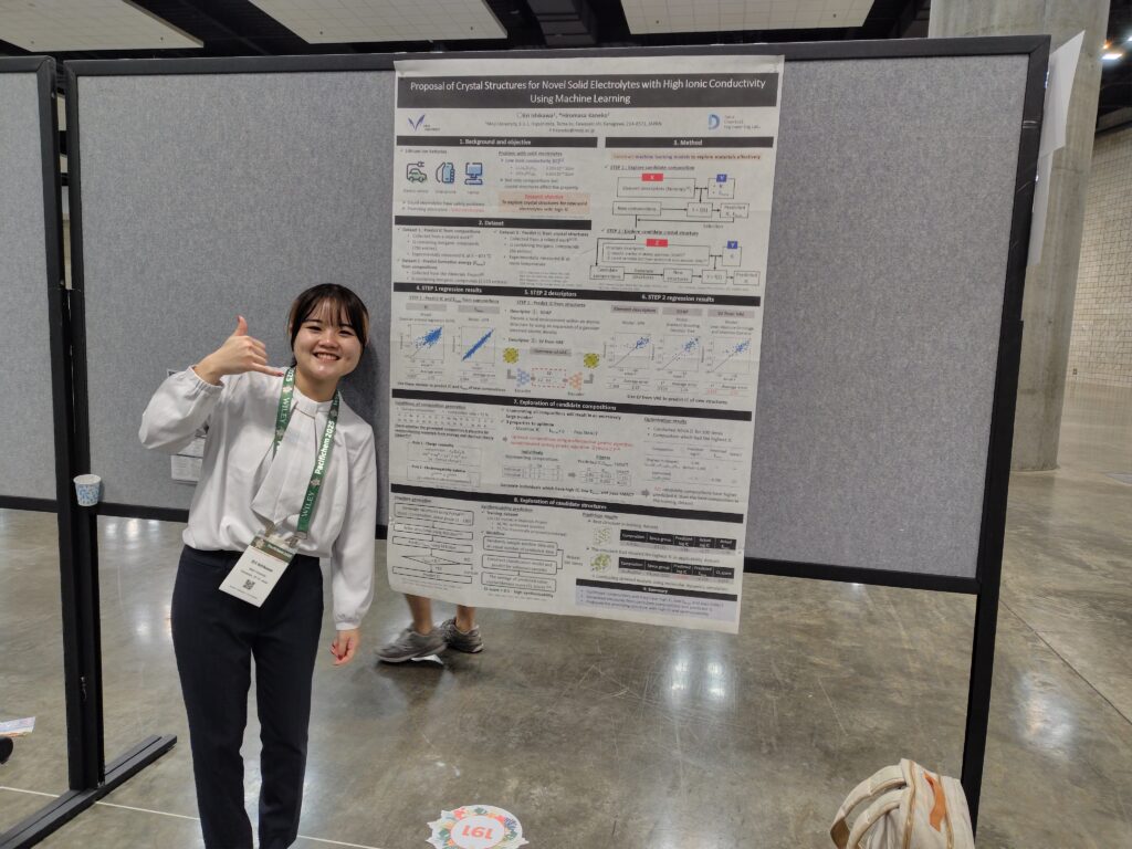 - Eri Ishikawa, Hiromasa Kaneko, Exploration of novel compositions for solid electrolytes with high ionic conductivity considering crystal structures using machine learning models, 240, The International Chemical Congress of Pacific Basin Societies 2025 (Pacifichem2025), Honolulu, Hawaii, December 18, 2025.