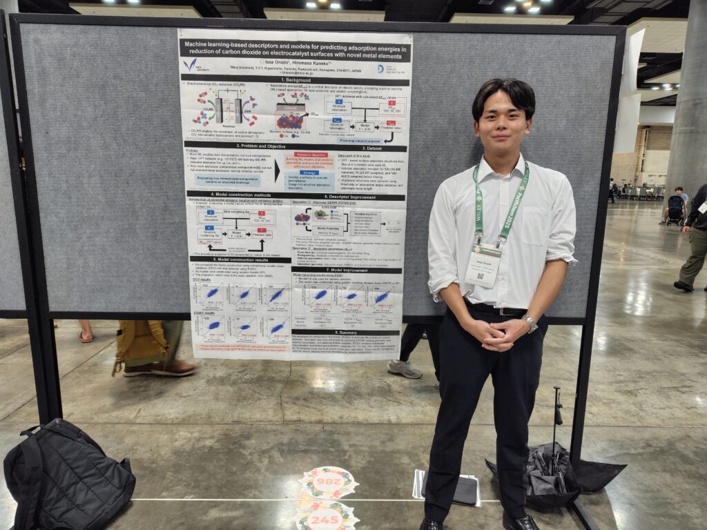 - Issa Onishi, Hiromasa Kaneko, Machine learning-based descriptors and models for predicting adsorption energies in reduction of carbon dioxide on electrocatalyst surfaces with novel metal elements, 245, The International Chemical Congress of Pacific Basin Societies 2025 (Pacifichem2025), Honolulu, Hawaii, December 18, 2025.