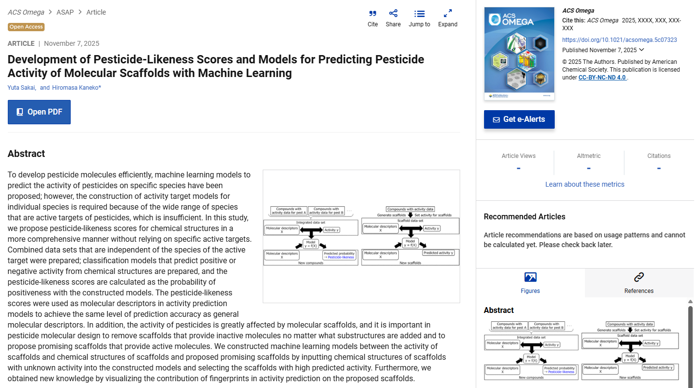 分子骨格の農薬活性を予測するモデルおよび農薬らしさのスコアを開発しました![金子研論文]